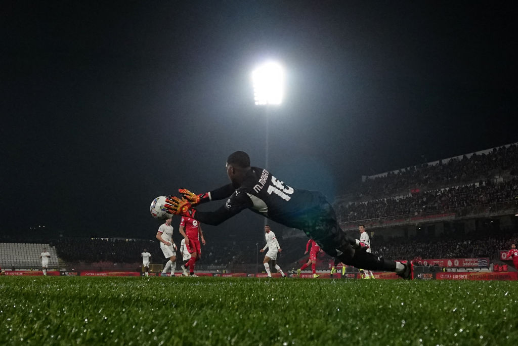 Due grandi parate di Mike Maignan a Monza, una sul tiro da sinistra da parte di Daniel Maldini...