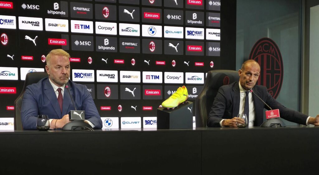 Ad affiancare Massimiliano Allegri nella tradizionale conferenza stampa di presentazione a Casa Milan, il direttore sportivo rossonero, Igli Tare.