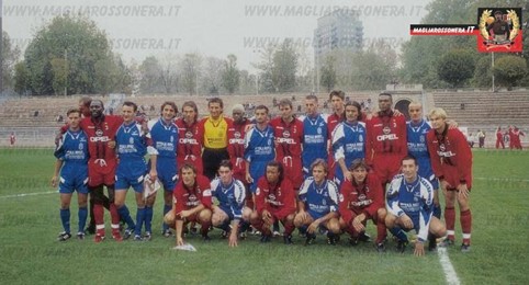 (da magliarossonera.it - Le due formazioni al centro del campo, per gentile concessione di Chrystian Calvelli)[/caption]
