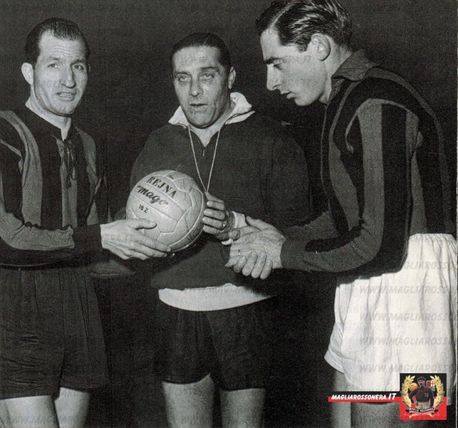 Partita a scopo benefico pro alluvionati del Polesine (8 milioni di lire circa di incasso) Sabato 14 gennaio 1950 Arena Civica, Milano Reti: Conte (2), Casola (3), F. Coppi CICLISTI TIFOSI MILAN: F. Magni, Bergomi, Ausenda, Serse Coppi, Scrivanti, Seghezzi, Fausto Coppi, Casola, Conte, Tosi, Ricci (Valeriano Zanazzi) CICLISTI TIFOSI INTER: Martini, Corrieri, Bresci, Degli Innocenti (Vito Ortelli), Biagioni, L. Maggini, Bartali, Logli, Furini, Bizzi, Bini (Leoni) Arbitro: Giuseppe Meazza Segnalinee a turno: le vecchie glorie Belloni, Binda, Girardengo e Guerra Massaggiatore: l’intramontabile Eugenio Pilotta Spettatori: oltre 20.000 (presente anche il sindaco Antonio Greppi)Milan-Inter il derby del Giro d'Italia 1950, l'archivio storico: VIDEO E IMMAGINI