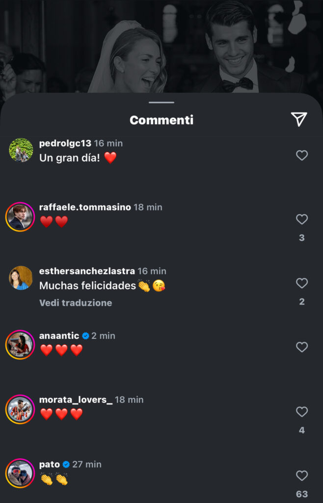 Non manca anche il commento di Alexandre Pato sui social di Alvaro Morata che con un messaggio d'amore per la sua Alice scaccia ogni pensiero dei tifosi su un rapporto incrinato