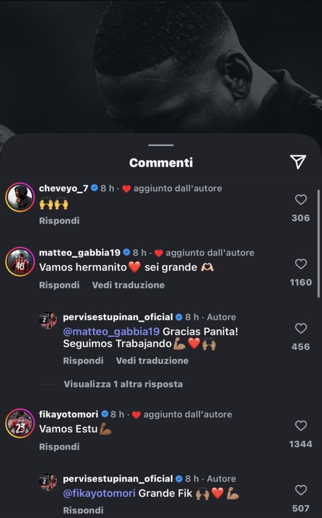 Estupinan dopo la vittoria del Milan contro il Napoli scrive un messaggio social importante sul suo profilo Instagram. Dal post pubblicato dell'ecuadoriano si può percepire come il gruppo squadra sia compatto e unito. Il Milan degli ultimi 37 minuti della gara giocata contro il Napoli è stata una squadra compatta, battagliera, con un'anima diversa rispetto alla passata stagione. Al 60º minuto i rossoneri rimangono in dieci a causa dell'espulsione proprio di Estupinan e subiscono il gol su rigore segnato da De Bruyne. Poteva essere l'inizio della fine, invece è stato l'inizio di una conferma, resa certezza assoluta anche dallo stesso Pervis.