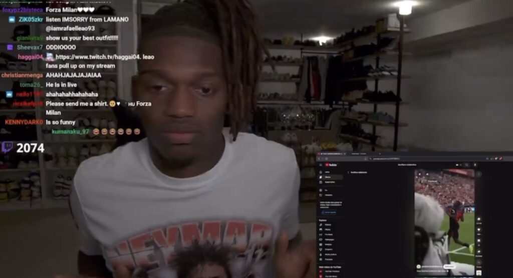 Leao su Twitich è come un tifoso che ama il suo Milan e basta vedere quel che è accaduto nella giornata di oggi con Boniface per capirlo