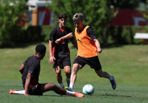 CAIRATE, ITALY - JULY 08: Rafael Leao of AC Milan in action (Photo by Claudio Villa/AC Milan via Getty Images)