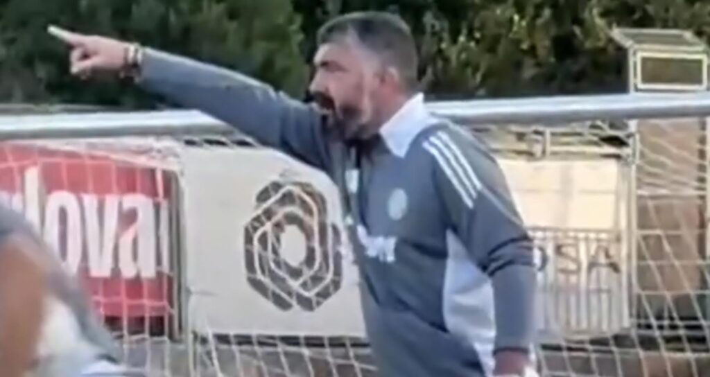 Rino Gattuso ai giocatori Hajduk che si allenano: qualche imprecazione e le sue urla durante gli esercizi...