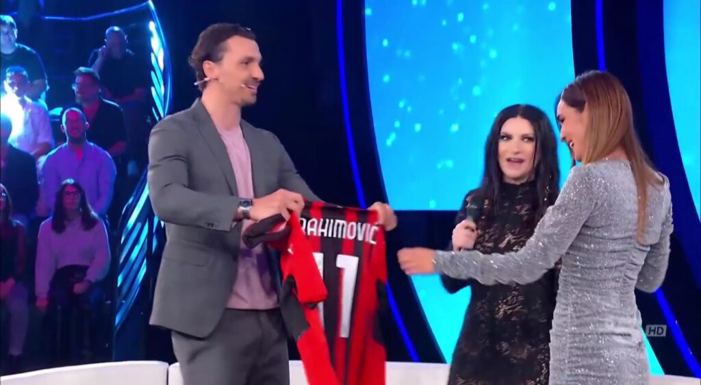 Canale 5, Zlatan Ibrahimovic a This is me, il regalo della maglia numero 11 del Milan autografata a Laura Pausini e Silvia Toffanin